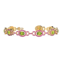 These 14k Yellow Gold bracelets feature fine quality Pink Tourmaline gemstones. This Halo Bracelet Consists Of A Beautiful Oval Shaped Gem Floating in Between A Halo Of Gems, Connected By Gemstone Links. Free shipping, returns, and a lifetime warranty make luxury worry-free