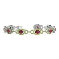 These 18k White Gold bracelets feature fine quality Peridot gemstones. This Halo Bracelet Consists Of A Beautiful Oval Shaped Gem Floating in Between A Halo Of Gems, Connected By Gemstone Links. Free shipping, returns, and a lifetime warranty make luxury worry-free