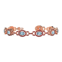 These 18K Rose Gold bracelets feature fine quality Ruby gemstones. This Halo Bracelet Consists Of A Beautiful Oval Shaped Gem Floating in Between A Halo Of Gems, Connected By Gemstone Links. Free shipping, returns, and a lifetime warranty make luxury worry-free