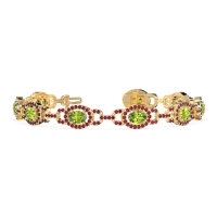 These 14k Yellow Gold bracelets feature fine quality Ruby gemstones. This Halo Bracelet Consists Of A Beautiful Oval Shaped Gem Floating in Between A Halo Of Gems, Connected By Gemstone Links. Free shipping, returns, and a lifetime warranty make luxury worry-free