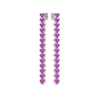 These 18k White Gold Amethyst earrings feature top quality Natural Amethyst gemstones. These Beautiful Linear Drop Earrings Feature A Long, Elegant Line Of Heart-shaped Clusters, Each Set With Multiple Sparkling Gemstones. The Design Creates A Continuous Cascade Of Brilliance, Making Them A Stunning Statement Piece. Feature A Post-and-back Closure. Free shipping, returns, and a lifetime warranty make luxury worry-free