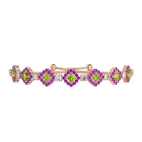 These 18K Rose Gold bracelets feature fine quality Amethyst gemstones. This Adjustable Bracelet Features Diamond Shapes Links with Princess Cut Stones Surrounded By Round Shaped Stones Forming A Halo. Free shipping, returns, and a lifetime warranty make luxury worry-free