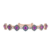 These 14K Rose Gold bracelets feature fine quality London Blue Topaz gemstones. This Adjustable Bracelet Features Diamond Shapes Links with Princess Cut Stones Surrounded By Round Shaped Stones Forming A Halo. Free shipping, returns, and a lifetime warranty make luxury worry-free