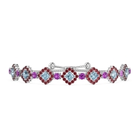 These 14k White Gold bracelets feature fine quality Ruby gemstones. This Adjustable Bracelet Features Diamond Shapes Links with Princess Cut Stones Surrounded By Round Shaped Stones Forming A Halo. Free shipping, returns, and a lifetime warranty make luxury worry-free