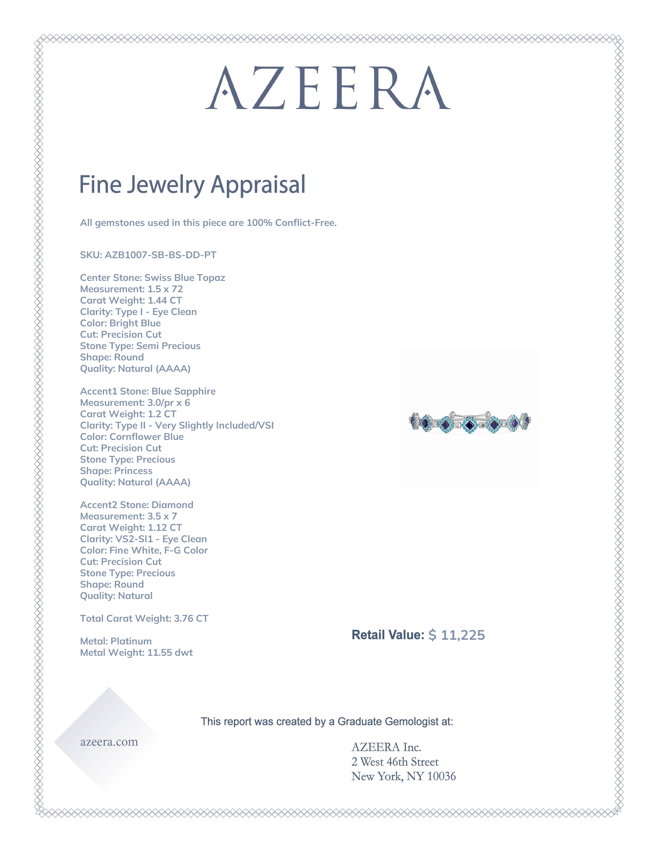These Platinum bracelets feature fine quality Swiss Blue Topaz gemstones. This Adjustable Bracelet Features Diamond Shapes Links with Princess Cut Stones Surrounded By Round Shaped Stones Forming A Halo. Free shipping, returns, and a lifetime warranty make luxury worry-free
