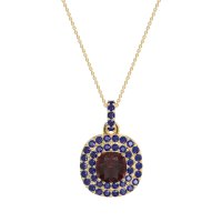 This Lab Ruby and Blue Sapphire Necklace is casted in 14k Yellow Gold. This Women’s Halo necklace features exceptionally fine gemstones, on par with those found in the world's most exclusive boutiques and among the top 10% available globally. Double Halo Pendant Showcasing A Cushion-cut Center Stone Framed By A Double Halo Of Shimmering Accents. This necklace comes with a complimentary 18-inch chain. Enjoy the confidence of our 30-day, stress-free return policy—with return shipping fully covered. Each piece is also accompanied by a Lifetime Warranty, ensuring lasting beauty and peace of mind.