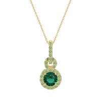 This Emerald and Peridot Necklace is casted in 14k Yellow Gold. This Women’s Halo necklace features exceptionally fine gemstones, on par with those found in the world's most exclusive boutiques and among the top 10% available globally. This Double Halo Pendant Features A Round Stone Surrounded By A Large Halo Of Gems, Set Below Another Smaller Halo Of Gems, All Held By A Gem Studded Bail. This necklace comes with a complimentary 18-inch chain. Enjoy the confidence of our 30-day, stress-free return policy—with return shipping fully covered. Each piece is also accompanied by a Lifetime Warranty, ensuring lasting beauty and peace of mind.