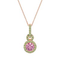 This Pink Tourmaline and Peridot Necklace is casted in 14K Rose Gold. This Women’s Halo necklace features exceptionally fine gemstones, on par with those found in the world's most exclusive boutiques and among the top 10% available globally. This Double Halo Pendant Features A Round Stone Surrounded By A Large Halo Of Gems, Set Below Another Smaller Halo Of Gems, All Held By A Gem Studded Bail. This necklace comes with a complimentary 18-inch chain. Enjoy the confidence of our 30-day, stress-free return policy—with return shipping fully covered. Each piece is also accompanied by a Lifetime Warranty, ensuring lasting beauty and peace of mind.
