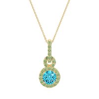 This Swiss Blue Topaz and Peridot Necklace is casted in 14k Yellow Gold. This Women’s Halo necklace features exceptionally fine gemstones, on par with those found in the world's most exclusive boutiques and among the top 10% available globally. This Double Halo Pendant Features A Round Stone Surrounded By A Large Halo Of Gems, Set Below Another Smaller Halo Of Gems, All Held By A Gem Studded Bail. This necklace comes with a complimentary 18-inch chain. Enjoy the confidence of our 30-day, stress-free return policy—with return shipping fully covered. Each piece is also accompanied by a Lifetime Warranty, ensuring lasting beauty and peace of mind.