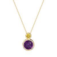 This Amethyst and Citrine Necklace is casted in 18k Yellow Gold. This Women’s Classic necklace features exceptionally fine gemstones, on par with those found in the world's most exclusive boutiques and among the top 10% available globally. Modern Pendant with A Stacked Circular Design. A Larger, Bezel-set Round Stone Is Featured Below A Smaller Bezel-set Stone. A Chic And Contemporary Piece. This necklace comes with a complimentary 18-inch chain. Enjoy the confidence of our 30-day, stress-free return policy—with return shipping fully covered. Each piece is also accompanied by a Lifetime Warranty, ensuring lasting beauty and peace of mind.
