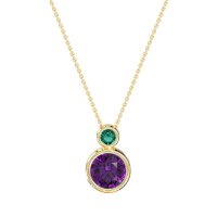 This Amethyst and Emerald Necklace is casted in 14k Yellow Gold. This Women’s Classic necklace features exceptionally fine gemstones, on par with those found in the world's most exclusive boutiques and among the top 10% available globally. Modern Pendant with A Stacked Circular Design. A Larger, Bezel-set Round Stone Is Featured Below A Smaller Bezel-set Stone. A Chic And Contemporary Piece. This necklace comes with a complimentary 18-inch chain. Enjoy the confidence of our 30-day, stress-free return policy—with return shipping fully covered. Each piece is also accompanied by a Lifetime Warranty, ensuring lasting beauty and peace of mind.