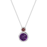 This Amethyst and Ruby Necklace is casted in Platinum. This Women’s Classic necklace features exceptionally fine gemstones, on par with those found in the world's most exclusive boutiques and among the top 10% available globally. Modern Pendant with A Stacked Circular Design. A Larger, Bezel-set Round Stone Is Featured Below A Smaller Bezel-set Stone. A Chic And Contemporary Piece. This necklace comes with a complimentary 18-inch chain. Enjoy the confidence of our 30-day, stress-free return policy—with return shipping fully covered. Each piece is also accompanied by a Lifetime Warranty, ensuring lasting beauty and peace of mind.