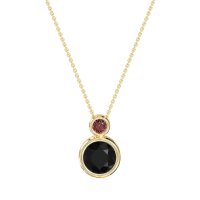 This Black Onyx and Ruby Necklace is casted in 18k Yellow Gold. This Women’s Classic necklace features exceptionally fine gemstones, on par with those found in the world's most exclusive boutiques and among the top 10% available globally. Modern Pendant with A Stacked Circular Design. A Larger, Bezel-set Round Stone Is Featured Below A Smaller Bezel-set Stone. A Chic And Contemporary Piece. This necklace comes with a complimentary 18-inch chain. Enjoy the confidence of our 30-day, stress-free return policy—with return shipping fully covered. Each piece is also accompanied by a Lifetime Warranty, ensuring lasting beauty and peace of mind.
