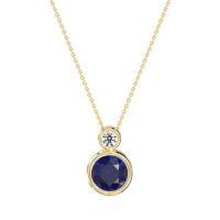 This Lab Blue Sapphire and Lab Diamond Necklace is casted in 14k Yellow Gold. This Women’s Classic necklace features exceptionally fine gemstones, on par with those found in the world's most exclusive boutiques and among the top 10% available globally. Modern Pendant with A Stacked Circular Design. A Larger, Bezel-set Round Stone Is Featured Below A Smaller Bezel-set Stone. A Chic And Contemporary Piece. This necklace comes with a complimentary 18-inch chain. Enjoy the confidence of our 30-day, stress-free return policy—with return shipping fully covered. Each piece is also accompanied by a Lifetime Warranty, ensuring lasting beauty and peace of mind.