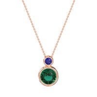 This Lab Emerald and Blue Sapphire Necklace is casted in 14K Rose Gold. This Women’s Classic necklace features exceptionally fine gemstones, on par with those found in the world's most exclusive boutiques and among the top 10% available globally. Modern Pendant with A Stacked Circular Design. A Larger, Bezel-set Round Stone Is Featured Below A Smaller Bezel-set Stone. A Chic And Contemporary Piece. This necklace comes with a complimentary 18-inch chain. Enjoy the confidence of our 30-day, stress-free return policy—with return shipping fully covered. Each piece is also accompanied by a Lifetime Warranty, ensuring lasting beauty and peace of mind.