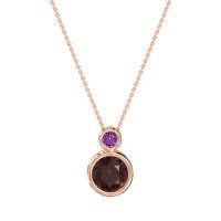 This Lab Ruby and Amethyst Necklace is casted in 14K Rose Gold. This Women’s Classic necklace features exceptionally fine gemstones, on par with those found in the world's most exclusive boutiques and among the top 10% available globally. Modern Pendant with A Stacked Circular Design. A Larger, Bezel-set Round Stone Is Featured Below A Smaller Bezel-set Stone. A Chic And Contemporary Piece. This necklace comes with a complimentary 18-inch chain. Enjoy the confidence of our 30-day, stress-free return policy—with return shipping fully covered. Each piece is also accompanied by a Lifetime Warranty, ensuring lasting beauty and peace of mind.