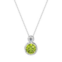 This Peridot and Lab Diamond Necklace is casted in 18k White Gold. This Women’s Classic necklace features exceptionally fine gemstones, on par with those found in the world's most exclusive boutiques and among the top 10% available globally. Modern Pendant with A Stacked Circular Design. A Larger, Bezel-set Round Stone Is Featured Below A Smaller Bezel-set Stone. A Chic And Contemporary Piece. This necklace comes with a complimentary 18-inch chain. Enjoy the confidence of our 30-day, stress-free return policy—with return shipping fully covered. Each piece is also accompanied by a Lifetime Warranty, ensuring lasting beauty and peace of mind.