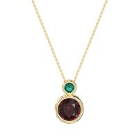 This Ruby and Emerald Necklace is casted in 14k Yellow Gold. This Women’s Classic necklace features exceptionally fine gemstones, on par with those found in the world's most exclusive boutiques and among the top 10% available globally. Modern Pendant with A Stacked Circular Design. A Larger, Bezel-set Round Stone Is Featured Below A Smaller Bezel-set Stone. A Chic And Contemporary Piece. This necklace comes with a complimentary 18-inch chain. Enjoy the confidence of our 30-day, stress-free return policy—with return shipping fully covered. Each piece is also accompanied by a Lifetime Warranty, ensuring lasting beauty and peace of mind.