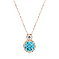This Swiss Blue Topaz and Lab Diamond Necklace is casted in 14K Rose Gold. This Women’s Classic necklace features exceptionally fine gemstones, on par with those found in the world's most exclusive boutiques and among the top 10% available globally. Modern Pendant with A Stacked Circular Design. A Larger, Bezel-set Round Stone Is Featured Below A Smaller Bezel-set Stone. A Chic And Contemporary Piece. This necklace comes with a complimentary 18-inch chain. Enjoy the confidence of our 30-day, stress-free return policy—with return shipping fully covered. Each piece is also accompanied by a Lifetime Warranty, ensuring lasting beauty and peace of mind.