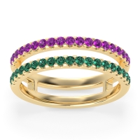 This Amethyst wedding ring is casted in 18k Yellow Gold and set with fine quality Amethyst and Emerald. All of the gemstones we use are of the top 10% available, those found in fine quality boutiques across the world. This Amethyst wedding band can also be added to your collection of minimalist Amethyst rings. A Double Take On The Classic Women's Wedding Band, This Unique Ring Design Gives The Illusion Of Two Separate Bands. Free shipping, returns, resizing, and a lifetime warranty ensure you love your purchase.