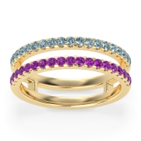 This Aquamarine wedding ring is casted in 14k Yellow Gold and set with fine quality Aquamarine and Amethyst. All of the gemstones we use are of the top 10% available, those found in fine quality boutiques across the world. This Aquamarine wedding band can also be added to your collection of minimalist Aquamarine rings. A Double Take On The Classic Women's Wedding Band, This Unique Ring Design Gives The Illusion Of Two Separate Bands. Free shipping, returns, resizing, and a lifetime warranty ensure you love your purchase.