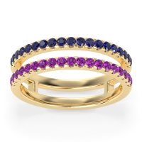 This Blue Sapphire wedding ring is casted in 14k Yellow Gold and set with fine quality Blue Sapphire and Amethyst. All of the gemstones we use are of the top 10% available, those found in fine quality boutiques across the world. This Blue Sapphire wedding band can also be added to your collection of minimalist Blue Sapphire rings. A Double Take On The Classic Women's Wedding Band, This Unique Ring Design Gives The Illusion Of Two Separate Bands. Free shipping, returns, resizing, and a lifetime warranty ensure you love your purchase.