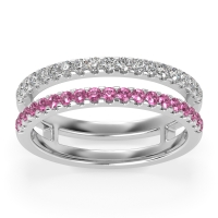 This Diamond wedding ring is casted in 18k White Gold and set with fine quality Diamond and Pink Tourmaline. All of the gemstones we use are of the top 10% available, those found in fine quality boutiques across the world. This Diamond wedding band can also be added to your collection of minimalist Diamond rings. A Double Take On The Classic Women's Wedding Band, This Unique Ring Design Gives The Illusion Of Two Separate Bands. Free shipping, returns, resizing, and a lifetime warranty ensure you love your purchase.