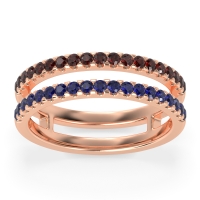 This Garnet wedding ring is casted in 18K Rose Gold and set with fine quality Garnet and Blue Sapphire. All of the gemstones we use are of the top 10% available, those found in fine quality boutiques across the world. This Garnet wedding band can also be added to your collection of minimalist Garnet rings. A Double Take On The Classic Women's Wedding Band, This Unique Ring Design Gives The Illusion Of Two Separate Bands. Free shipping, returns, resizing, and a lifetime warranty ensure you love your purchase.