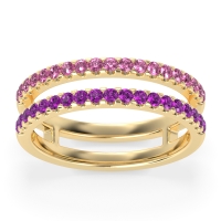 This Pink Tourmaline wedding ring is casted in 18k Yellow Gold and set with fine quality Pink Tourmaline and Amethyst. All of the gemstones we use are of the top 10% available, those found in fine quality boutiques across the world. This Pink Tourmaline wedding band can also be added to your collection of minimalist Pink Tourmaline rings. A Double Take On The Classic Women's Wedding Band, This Unique Ring Design Gives The Illusion Of Two Separate Bands. Free shipping, returns, resizing, and a lifetime warranty ensure you love your purchase.