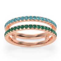 This Swiss Blue Topaz wedding ring is casted in 14K Rose Gold and set with fine quality Swiss Blue Topaz and Emerald. All of the gemstones we use are of the top 10% available, those found in fine quality boutiques across the world. This Swiss Blue Topaz wedding band can also be added to your collection of minimalist Swiss Blue Topaz rings. A Double Take On The Classic Women's Wedding Band, This Unique Ring Design Gives The Illusion Of Two Separate Bands. Free shipping, returns, resizing, and a lifetime warranty ensure you love your purchase.
