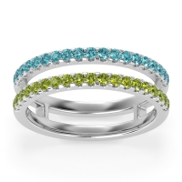 This Swiss Blue Topaz wedding ring is casted in Platinum and set with fine quality Swiss Blue Topaz and Peridot. All of the gemstones we use are of the top 10% available, those found in fine quality boutiques across the world. This Swiss Blue Topaz wedding band can also be added to your collection of minimalist Swiss Blue Topaz rings. A Double Take On The Classic Women's Wedding Band, This Unique Ring Design Gives The Illusion Of Two Separate Bands. Free shipping, returns, resizing, and a lifetime warranty ensure you love your purchase.