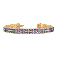 These 14k Yellow Gold bracelets feature fine quality Emerald gemstones. Make A Bold Statement with This Extraordinary Two-row Tennis Bracelet. Its Mesmerizing Rows Of Perfectly Set Round Gemstones Capture The Light with Every Movement. Free shipping, returns, and a lifetime warranty make luxury worry-free