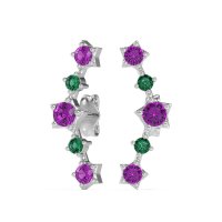 These Amethyst earrings and made in 18k White Gold with top quality Natural Amethyst and Emerald gemstones. These Stylish Ear Climber Stud Earrings Offer A Unique And Modern Way To Adorn The Ear. Designed To Follow The Curve Of Your Earlobe Upwards, They Create A Distinctive, Elongated Look That Gives The Illusion Of Multiple Piercings. Combining The Ease Of A Stud With The Impact Of A Statement Piece, They Are Perfect For Adding Contemporary Flair. Free shipping, returns, and a lifetime warranty make luxury worry-free