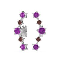 These Amethyst earrings and made in 18k White Gold with top quality Natural Amethyst and Garnet gemstones. These Stylish Ear Climber Stud Earrings Offer A Unique And Modern Way To Adorn The Ear. Designed To Follow The Curve Of Your Earlobe Upwards, They Create A Distinctive, Elongated Look That Gives The Illusion Of Multiple Piercings. Combining The Ease Of A Stud With The Impact Of A Statement Piece, They Are Perfect For Adding Contemporary Flair. Free shipping, returns, and a lifetime warranty make luxury worry-free