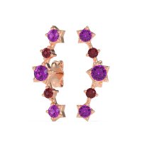 These Amethyst earrings and made in 18K Rose Gold with top quality Natural Amethyst and Ruby gemstones. These Stylish Ear Climber Stud Earrings Offer A Unique And Modern Way To Adorn The Ear. Designed To Follow The Curve Of Your Earlobe Upwards, They Create A Distinctive, Elongated Look That Gives The Illusion Of Multiple Piercings. Combining The Ease Of A Stud With The Impact Of A Statement Piece, They Are Perfect For Adding Contemporary Flair. Free shipping, returns, and a lifetime warranty make luxury worry-free