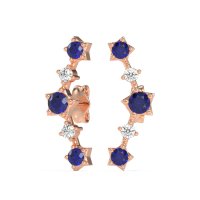These Blue Sapphire earrings and made in 14K Rose Gold with top quality Blue Sapphire and Lab Diamond gemstones. These Stylish Ear Climber Stud Earrings Offer A Unique And Modern Way To Adorn The Ear. Designed To Follow The Curve Of Your Earlobe Upwards, They Create A Distinctive, Elongated Look That Gives The Illusion Of Multiple Piercings. Combining The Ease Of A Stud With The Impact Of A Statement Piece, They Are Perfect For Adding Contemporary Flair. Free shipping, returns, and a lifetime warranty make luxury worry-free