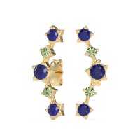 These Blue Sapphire earrings and made in 18k Yellow Gold with top quality Natural Blue Sapphire and Peridot gemstones. These Stylish Ear Climber Stud Earrings Offer A Unique And Modern Way To Adorn The Ear. Designed To Follow The Curve Of Your Earlobe Upwards, They Create A Distinctive, Elongated Look That Gives The Illusion Of Multiple Piercings. Combining The Ease Of A Stud With The Impact Of A Statement Piece, They Are Perfect For Adding Contemporary Flair. Free shipping, returns, and a lifetime warranty make luxury worry-free