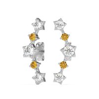 These Diamond earrings and made in 18k White Gold with top quality Natural Diamond and Citrine gemstones. These Stylish Ear Climber Stud Earrings Offer A Unique And Modern Way To Adorn The Ear. Designed To Follow The Curve Of Your Earlobe Upwards, They Create A Distinctive, Elongated Look That Gives The Illusion Of Multiple Piercings. Combining The Ease Of A Stud With The Impact Of A Statement Piece, They Are Perfect For Adding Contemporary Flair. Free shipping, returns, and a lifetime warranty make luxury worry-free