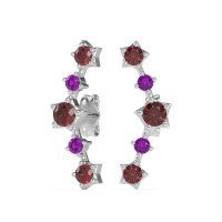 These Garnet earrings and made in 18k White Gold with top quality Natural Garnet and Amethyst gemstones. These Stylish Ear Climber Stud Earrings Offer A Unique And Modern Way To Adorn The Ear. Designed To Follow The Curve Of Your Earlobe Upwards, They Create A Distinctive, Elongated Look That Gives The Illusion Of Multiple Piercings. Combining The Ease Of A Stud With The Impact Of A Statement Piece, They Are Perfect For Adding Contemporary Flair. Free shipping, returns, and a lifetime warranty make luxury worry-free