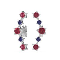 These Ruby earrings and made in 18k White Gold with top quality Natural Ruby and Blue Sapphire gemstones. These Stylish Ear Climber Stud Earrings Offer A Unique And Modern Way To Adorn The Ear. Designed To Follow The Curve Of Your Earlobe Upwards, They Create A Distinctive, Elongated Look That Gives The Illusion Of Multiple Piercings. Combining The Ease Of A Stud With The Impact Of A Statement Piece, They Are Perfect For Adding Contemporary Flair. Free shipping, returns, and a lifetime warranty make luxury worry-free