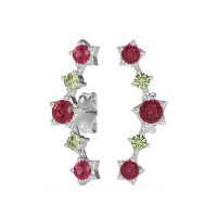 These Ruby earrings and made in 18k White Gold with top quality Natural Ruby and Peridot gemstones. These Stylish Ear Climber Stud Earrings Offer A Unique And Modern Way To Adorn The Ear. Designed To Follow The Curve Of Your Earlobe Upwards, They Create A Distinctive, Elongated Look That Gives The Illusion Of Multiple Piercings. Combining The Ease Of A Stud With The Impact Of A Statement Piece, They Are Perfect For Adding Contemporary Flair. Free shipping, returns, and a lifetime warranty make luxury worry-free