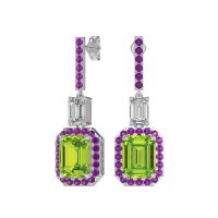 These 14k White Gold Peridot earrings feature fine quality with Natural Peridot, Diamond and Amethyst gemstones. These Sophisticated Dangling Earrings Showcase A Captivating Linear Design, Starting With A Brilliant Bar Of Gemstones At The Top. This Connects Gracefully To A Striking Emerald-cut Stone, Which In Turn Leads To A Larger, Radiant Emerald-cut Stone Beautifully Encircled By A Sparkling Halo At The Bottom. The Tiered Arrangement And Precise Facets Of The Emerald Cuts Ensure Breathtaking Movement And Unparalleled Sparkle, Making A Truly Elegant Statement. Free shipping, returns, and a lifetime warranty make luxury worry-free.