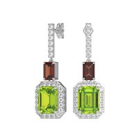 These 14k White Gold Peridot earrings feature fine quality with Peridot, Garnet and Lab Diamond gemstones. These Sophisticated Dangling Earrings Showcase A Captivating Linear Design, Starting With A Brilliant Bar Of Gemstones At The Top. This Connects Gracefully To A Striking Emerald-cut Stone, Which In Turn Leads To A Larger, Radiant Emerald-cut Stone Beautifully Encircled By A Sparkling Halo At The Bottom. The Tiered Arrangement And Precise Facets Of The Emerald Cuts Ensure Breathtaking Movement And Unparalleled Sparkle, Making A Truly Elegant Statement. Free shipping, returns, and a lifetime warranty make luxury worry-free.