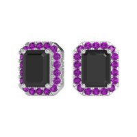 These Black Onyx earrings and made in Platinum with top quality Natural Black Onyx and Amethyst gemstones. These Emerald Cut Halo Stud Earrings Feature Striking Emerald-cut Center Stones Framed By A Shimmering Halo Of Smaller Accent Stones. The Classic Halo Setting Enhances The Brilliance And Clean Lines Of The Emerald Cut, Offering A Timeless And Elegant Look Perfect For Both Everyday Wear And Formal Occasions. Free shipping, returns, and a lifetime warranty make luxury worry-free