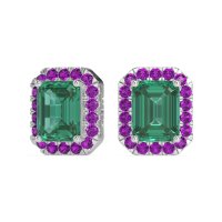 These Emerald earrings and made in Platinum with top quality Natural Emerald and Amethyst gemstones. These Emerald Cut Halo Stud Earrings Feature Striking Emerald-cut Center Stones Framed By A Shimmering Halo Of Smaller Accent Stones. The Classic Halo Setting Enhances The Brilliance And Clean Lines Of The Emerald Cut, Offering A Timeless And Elegant Look Perfect For Both Everyday Wear And Formal Occasions. Free shipping, returns, and a lifetime warranty make luxury worry-free