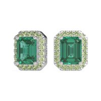 These Emerald earrings and made in Platinum with top quality Natural Emerald and Peridot gemstones. These Emerald Cut Halo Stud Earrings Feature Striking Emerald-cut Center Stones Framed By A Shimmering Halo Of Smaller Accent Stones. The Classic Halo Setting Enhances The Brilliance And Clean Lines Of The Emerald Cut, Offering A Timeless And Elegant Look Perfect For Both Everyday Wear And Formal Occasions. Free shipping, returns, and a lifetime warranty make luxury worry-free