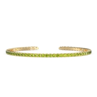 These 18k Yellow Gold bracelets feature fine quality Peridot gemstones. This Timeless Bangle Features Round Diamonds On Links Which Are Assembled On A Flexible Wire Making It Easy And Comfortable To Put On Or Take Off. Free shipping, returns, and a lifetime warranty make luxury worry-free