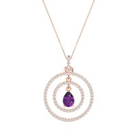 This Amethyst and Lab Diamond Necklace is casted in 14K Rose Gold. This Women’s Halo necklace features exceptionally fine gemstones, on par with those found in the world's most exclusive boutiques and among the top 10% available globally. Luminous Pendant Showcasing A Pear-shaped Center Stone Embraced By Two Concentric Halos Of Shimmering Accents. This necklace comes with a complimentary 18-inch chain. Enjoy the confidence of our 30-day, stress-free return policy—with return shipping fully covered. Each piece is also accompanied by a Lifetime Warranty, ensuring lasting beauty and peace of mind.