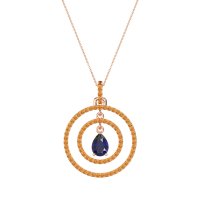 This Blue Sapphire and Citrine Necklace is casted in 14K Rose Gold. This Women’s Halo necklace features exceptionally fine gemstones, on par with those found in the world's most exclusive boutiques and among the top 10% available globally. Luminous Pendant Showcasing A Pear-shaped Center Stone Embraced By Two Concentric Halos Of Shimmering Accents. This necklace comes with a complimentary 18-inch chain. Enjoy the confidence of our 30-day, stress-free return policy—with return shipping fully covered. Each piece is also accompanied by a Lifetime Warranty, ensuring lasting beauty and peace of mind.