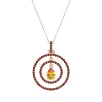This Citrine and Garnet Necklace is casted in 14K Rose Gold. This Women’s Halo necklace features exceptionally fine gemstones, on par with those found in the world's most exclusive boutiques and among the top 10% available globally. Luminous Pendant Showcasing A Pear-shaped Center Stone Embraced By Two Concentric Halos Of Shimmering Accents. This necklace comes with a complimentary 18-inch chain. Enjoy the confidence of our 30-day, stress-free return policy—with return shipping fully covered. Each piece is also accompanied by a Lifetime Warranty, ensuring lasting beauty and peace of mind.